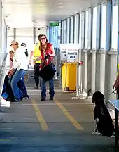 Собаки на работе в поисках фруктов в багаже пассажиров, прибывших на пароме из Тасмании