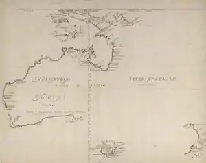 В 1642 году голландец Абел Тасман совершил путешествие, в ходе которого открыл Землю Ван-Димена (позже названную Тасманией) и Новую Зеландию, чем совершил значительный вклад в исследование Австралии. Он проплыл мимо восточного побережья Австралии к южному побережью Новой Гвинеи в 1644 году, когда совершал своё второе путешествие. Он пропустил Торресов пролив между Новой Гвинеей и Австралией и продолжил плыть на запад вдоль австралийского побережья, и в конечном итоге, благодаря ему, на картах было отображено западное побережье Австралии[44][45].