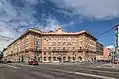 Каменноостровский пр., 15 / ул. Мира, 12. Дом по проекту архитекторов О. И. Гурьева и А. П. Щербёнка, вид с Австрийской площади