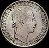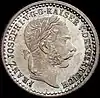 20 крейцеров | 21 | 2,7 | 1 | гладкий | серебро 500-й пробы | 1868—1870, 1872 | Суммарно[Тиражи 7] — 91 060 620[8] |