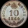 10 крейцеров | 18 | 2 | н/д | рубчатый | серебро 500-й пробы | 1858—1865 | Суммарно[Тиражи 5] — не менее 11 636 194[7] |