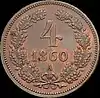 - Тираж 4 крейцеров по годам и монетным дворам: 1860 A, 1860 B и 1860 Е — 1 558 875; 1861 А — 17 548 750, 1861 В — 18 852 734, 1861 Е — 1 817 118; 1862 В — 383 000; 1864 В — 6 890 050.