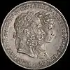 5 крейцеров | 16 | 1,3333 | н/д | рубчатый | серебро 375-й пробы | 1858—1860, 1863, 1864 | Суммарно[Тиражи 4] — не менее 8 223 939[7] |