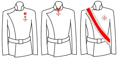 Крест командора аналогичен кресту I степени, но носился на шейной ленте.