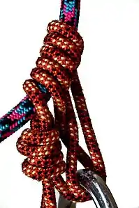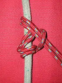 | Родственные узлы | автоблок (французский схватывающий узел), узел Прусика, швабиш |