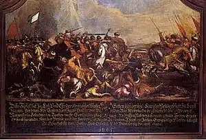 После взятия Нови-Зрина турки двинулись на Вену, однако на реке Раба между Могерсдорфом и Сентготтхардским аббатством столкнулись с армией Монтекукколи. В битве при Сентготтхарде турки потеряли от 16 до 22 тысяч своих лучших войск.
