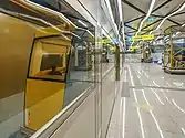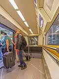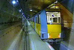 Пассажиров перевозят два безмоторных состава на канатной тяге, которые движутся в тоннеле независимо друг от друга, каждый по своему отдельному пути. Пути и направляющие в тоннелях железобетонные, на станциях — стальные. Поезда перевозят без смешивания пассажиров как общедоступной зоны, так и зоны дополнительных режимных ограничений, так называемой, чистой зоны. В каждом поезде по 4 четыре вагона, по 2 вагона отведено для каждой категории пассажиров[4].