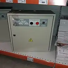 В Правилах устройства электроустановок используется термин автоматическое включение резервного питания и оборудования (АВР).[8] Потребители: коммутационный аппарат переключения (переключатель питания) (англ. Transfer switch) — аппарат для переключения одной или нескольких цепей нагрузки от одного источника к другому.[9]:п. 2.1.1 Отдельные установки: автоматическое включение электродвигателей резервных механизмов — включение резервного оборудования при выявлении нарушения технологического режима с помощью реле, реагирующих на неэлектрические величины.[5]:109
