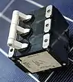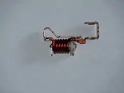 Биметаллическая пластина представляет собой ленту из двух металлических полос с разными коэффициентами теплового расширения. В автоматическом выключателе она выполняет роль теплового расцепителя. Две полосы не сплавлены между собой и обычно скреплены с одного конца пайкой или сваркой. Другие концы закреплены неподвижно. Биметаллическая пластина включена в цепь последовательно с нагрузкой. В результате её нагревания электрическим током пластина изгибается в сторону металла с меньшим коэффициентом линейного расширения. В случае перегрузки изгиб пластины обеспечивает отключение автоматического выключателя[7].