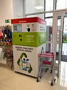 - Ольга Карасева. Допьете — не выбрасывайте: Зачем супермаркеты собирают бутылки и банки. The Village (13 августа 2019). Дата обращения: 25 февраля 2020.