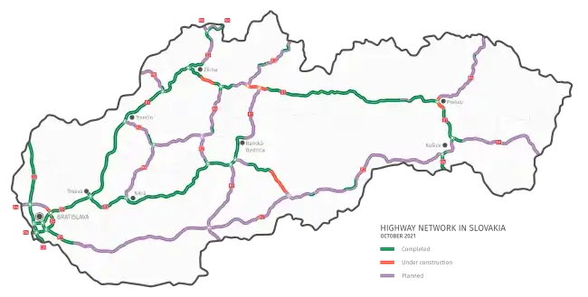 - Slovak highway network according to National Highway Company (словацк.) (недоступная ссылка). Дата обращения: 7 сентября 2019. Архивировано 7 сентября 2019 года.
