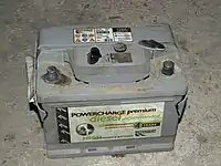 Автомоби́льный аккумуля́тор (точнее — автомобильная аккумуляторная батарея [сокр. автомобильная АКБ] ) — тип электрической аккумуляторной батареи, применяемый на автомобильном или мототранспорте. Используется в качестве вспомогательного источника электроэнергии в бортовой сети при неработающем двигателе и для запуска двигателя.