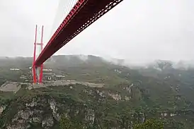 Один из первых висячих мостов в Азии построенный в горной местности. Стоимость строительства моста 8,6 млрд юаней.