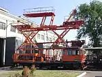 | АРВ-1 | ![]() | 12 | ОАО «Муромтепловоз» | Автомотриса ремонтно-восстановительная. Предназначена для ускоренной доставки ремонтного персонала к месту проведения работ, улучшения условий труда и повышения уровня механизации труда при техническом обслуживании устройства электроснабжения электрифицированных участков железных дорог с напряжением постоянного тока 3,3 кВ или переменного тока 27,5 кВ (со снятием напряжения в контактной сети). Оборудована неизолированной подъёмно-поворотной рабочей площадкой с площадью пола 7,5 м², токоприёмником с заземляющим устройством, натяжной лебёдкой для вытяжки контактного провода, смотровым фонарём для осмотра контактной сети, осветительными устройствами для работы в тёмное время суток.[47] |