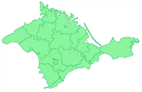 - Бахчисарайский район — включает Бахчисарайский район и часть территории, ранее подчинённой Севастопольскому горсовету (без самого города Севастополя, а также без Балаклавы как находившейся в городской черте Севастополя в рамках украинского законодательства),