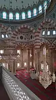 Молитвенная ниша в стене мечети — михраб, изготовленная из белого мрамора, обращена в сторону Мекки, указывая верующим направление во время молитвы. Ковровое покрытие мечети сочетает в себе традиционно чеченские цветовые оттенки с национальным орнаментом. Овальные своды мечети имени Шейха Бамат-Гирея Хаджи украшают тысячи изразцов. Каждый узор неповторим в своем исполнении и, несмотря на сложность исполнения, абсолютно симметричен. Под центральным куполом установлена 6-метровая люстра с напылением из золота, она украшена кристаллами Swarovski.