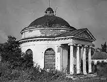 Ротонда была поставлена в 1818 году архитектором Пелли по рисунку Стасова, работавшего у Полторацких. Эта ампирная беседка представляла собой небольшой круглый павильон с 4-колонным портиком. При Гончаровых ротонда была приведена в порядок — до их покупки поместья под ротондой помещался ледник, а в ротонде — курятник, колонны же едва держались[3].