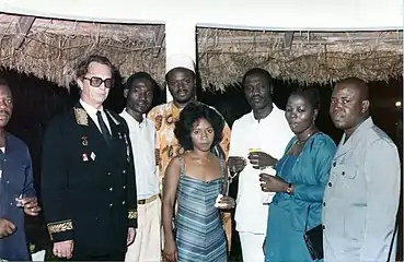 В. И. Агапов с группой бенинских студентов, приём в резиденции посла, 1983 г.