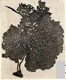 Спорангии развиваются на поверхности слоевищной пластины и имеют форму пятен[2].