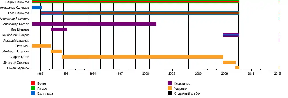 ![]() «Золотой» состав группы в 1990-2001 гг. | |