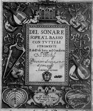 - Полный заголовок: Del sonare sopra'l basso con tutti li stromenti e dell'uso loro nel conserto («О том, как играть по басу со всеми инструментами и об их применении в ансамбле»). Английский перевод Оливера Странка в кн.: Source readings in music history. Revised edition. New York; London, 1998, p.621-628.