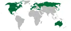 Государства — члены АЯЭ/ОЭСР (зелёные) |