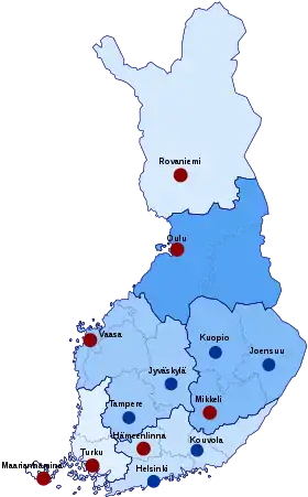 Турку (до конца 2010 года) Пори, Сало, Раума, Кемиёнсаари