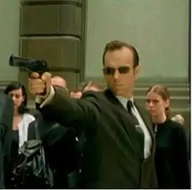 Агент Смит — компьютерная программа ИИ, автономный модуль-агент в Матрице, изначально защищающий Матрицу вместе с Агентом Брауном и Агентом Джонсом. Смит проявляет свою физическую форму захватывая и перезаписывая проекцию любого человека, подключенного в Матрице. Он одет в строгий похоронный черный костюм с белой рубашкой и черным галстуком, прямоугольные чёрные очки, носит наушник внутренней связи, который позволяет агентам мгновенно общаться друг с другом и воспринимать действия других людей, подключенных к Матрице, через тип общего сознания. В начале второй части «Матрицы» присылает свой наушник Нео, что символизирует отделение Смита от других агентов.