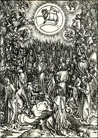 Поклонение Богу и Агнцу. Гравюра из цикла Апокалипсис Альбрехта Дюрера