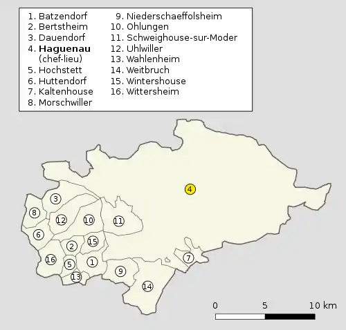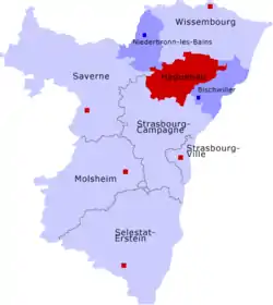 После административной реформы площадь кантона — 256,46 км², население — 48 854 человека (по данным INSEE, 2013[8]), плотность населения — 190 чел/км². В составе кантона осталось 14 коммун, коммуна Ветбрук передана в состав кантона Брюмат, а коммуна Кальтенуз — в состав кантона Бишвиллер.