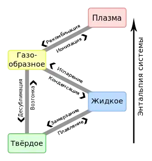 Агрега́тное состоя́ние вещества (от лат. aggrego «присоединяю») — физическое состояние вещества, зависящее от соответствующего сочетания температуры и давления. Изменение агрегатного состояния может сопровождаться скачкообразным изменением свободной энергии, энтропии, плотности и других физических величин.[1]