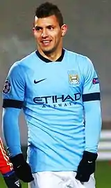 Се́рхио Леоне́ль Агуэ́ро дель Касти́льо (исп. Sergio Leonel Agüero del Castillo; род. 2 июня 1988, Кильмес, провинция Буэнос-Айрес) — аргентинский футболист, выступавший на позиции нападающего за клубы «Индепендьенте», «Атлетико Мадрид», «Манчестер Сити» и «Барселона», а также за сборную Аргентины. 5 июля 2003 года стал самым молодым игроком, дебютировавшим в чемпионате Аргентины в возрасте 15 лет и 35 дней, побив тем самым предыдущий рекорд, принадлежавший Диего Марадоне с 1976 года[3]. На своей футболке во время матчей чаще всего использовал прозвище Кун Агуэ́ро (исп. Kun Agüero)[4].