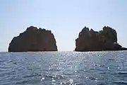 В прошлом скалы были соединены с побережьем, но постепенно море разрушало эту перемычку, и теперь под водой видны только остатки известняковой гряды, обросшей морскими водорослями. В начале XX века на одном из островов был оборудован ресторан «Венеция». Существовали также планы проложить подвесную канатную дорогу с берега на острова. Для этого в скале был вырублен тоннель, завершить постройку дороги помешала начавшаяся Первая мировая война[6]. Во время Второй мировой войны в один из островов (большой) попала авиационная бомба, отколовшая кусок скалы.