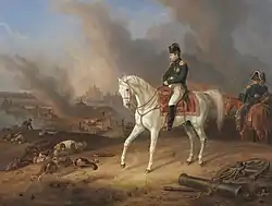 Наполеон со штабом в горящей Москве. Евгений Богарне — верхом, первый справа от Наполеона.