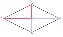 Площадь ромба равна сумме площадей его четырёх частей — равновеликих прямоугольных треугольников