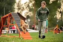 Аджилити — соревнования, в которых человек, называемый проводником (спортсменом, иногда — хэндлером), направляет собаку через полосу препятствий. При прохождении учитывается и скорость, и точность. Собаки должны бежать без поощрения едой или игрушками. Хэндлер не имеет права трогать собаку или препятствия, даже случайные касания штрафуются. Таким образом, средства управления собакой у хэндлера ограничены голосом, жестами и различными сигналами тела, что требует исключительных навыков от животного и проводника.