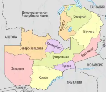 - Информация о Республике Замбия. Административно-территориальное деление (недоступная ссылка). Дата обращения: 1 июля 2018. Архивировано 1 июля 2018 года.
