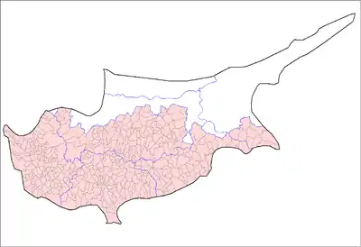 Управляемая Республикой Кипр территория делится на 33 общины (греч. δήμος):