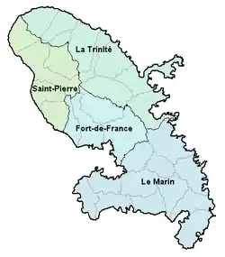 - округ Сен-Пьер (супрефектура: Сен-Пьер) с 5 кантонами и 8 коммунами. Население района было 23 336 человек в 1990, и было 23 464 человек в 1999, увеличение 0,55 %.