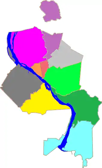 Таким образом, с 1980 года по настоящее время город разделён на 10 районов.[3]