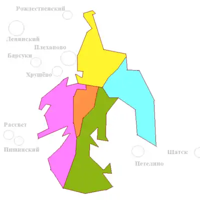 | 211 | Шатск | посёлок | 2702 | Шатский | Шатское | Пролетарский ТО |