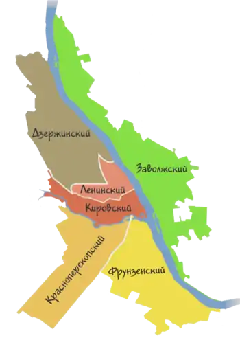 10 августа 1944 года из части территории Кагановичского выделен Приволжский район.