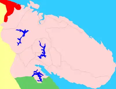 | ЗАТО Александровск | ![]() | Административный округ Гаджиево, в том числе: г. Гаджиево, н. п. Кувшинская Салма Административный округ Полярный, в том числе: г. Полярный Административный округ Снежногорск, в том числе: г. Снежногорск, н. п. Оленья Губа, н. п. Сайда Губа |