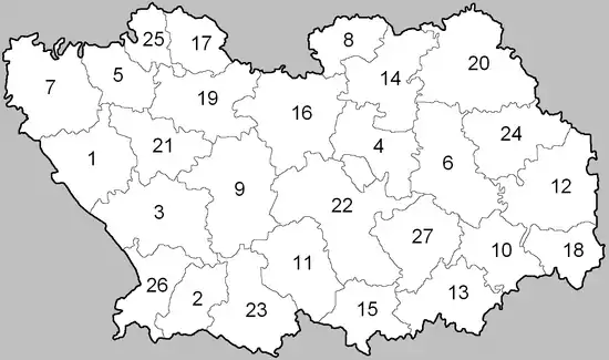 - 27 районов (сельских районов), в том числе:
