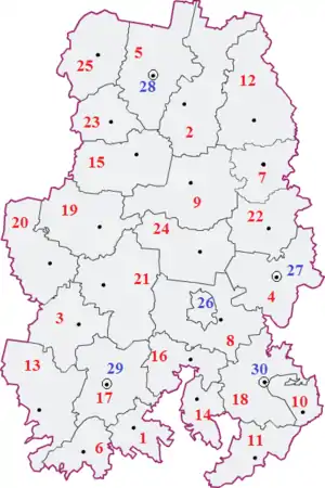 Города республиканского значения (городские округа): 26. Ижевск, 27. Воткинск, 28. Глазов, 29. Можга, 30. Сарапул.