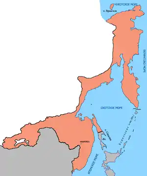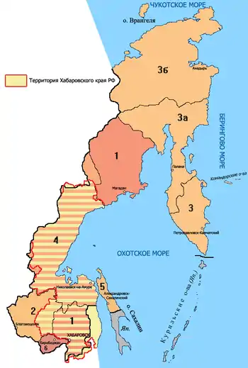 - Охотский уезд (центр — город Охотск)[12][13]