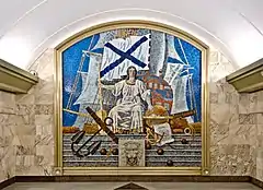 «Адмиралте́йская» — станция Петербургского метрополитена. Расположена на пятой (Фрунзенско-Приморской) линии, между станциями «Садовая» и «Спортивная». Изначально открытие планировалось в сентябре 1997 года вместе со станциями «Спортивная» и «Чкаловская», однако трудности со строительством выхода на поверхность позволили сделать это лишь в декабре 2011 года[3]. До этого времени уже построенная в конструкциях станция оставалась «станцией-призраком», которую поезда проезжали без остановки. В период навигации по Неве является одной из двух станций, открытых для проезда пассажиров в ночное время[4]. Самая глубокая станция метро в Санкт-Петербурге и России.