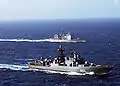 - С 16 мая по 15 декабря 1990 года корабль нёс боевую службу в Средиземном море, в ходе которой совершил деловой заход в сирийский порт Тартус и осуществлял слежение за авианосцем «Саратога» ВМС США.