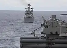 ![]() Эсминец «Адмирал Ушаков» в Кольском заливе в 2018 году. |