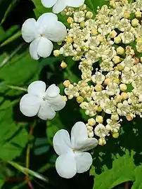 Соцветия растений семейства Адоксовые. Слева направо: Adoxa moschatellina, Sambucus racemosa, Viburnum opulus | ||||||||||